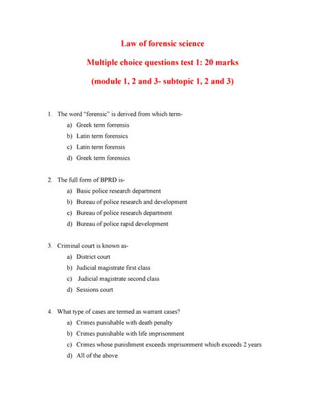 Read FORENSIC SCIENCE MULTIPLE CHOICE QUESTIONS ANSWERS Doc